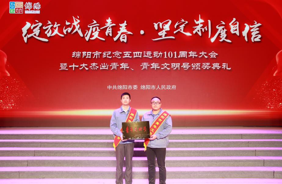 4月28日上午,“綻放戰(zhàn)疫青春·堅(jiān)定制度自信”綿陽(yáng)市紀(jì)念五四運(yùn)動(dòng)101周年大會(huì)暨十大杰出青年、青年文明號(hào)頒獎(jiǎng)典禮在綿州劇院舉行。綿陽(yáng)市委書記劉超,市政協(xié)主席李亞蓮,市委常委、宣傳部長(zhǎng)、秘書長(zhǎng)張學(xué)民,市人大常委會(huì)副主任李川萍,市政府副市長(zhǎng)蔣麗英,市政協(xié)副主席李京平等領(lǐng)導(dǎo)出席頒獎(jiǎng)典禮。市政府副市長(zhǎng)蔣麗英為獲得綿陽(yáng)市“青年文明號(hào)”的團(tuán)體代表頒獎(jiǎng)。東材科技黨員先鋒志愿隊(duì)榮獲綿陽(yáng)市“青年文明號(hào)”榮譽(yù)稱號(hào),黨員楊晨、唐建作為志愿隊(duì)代表參加了本次典禮。
